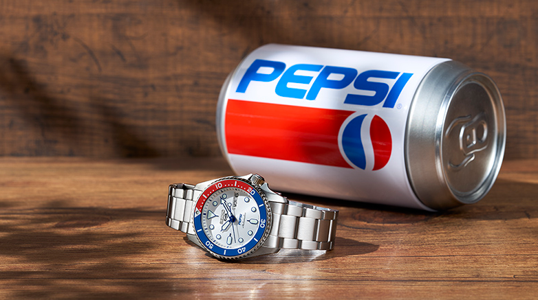 Outro objeto em vias de extinção, o relógio, foi responsável por formar filas de interessados em uma edição limitada endossada por uma marca de...refrigerantes. Expliquemo-nos, pois é meio complicadinho: um dos modelos da Rolex tem aro vermelho e azul, o que lhe rendeu o apelido de "Pepsi", em função das cores coincidentes com as da marca de refresco. A japonesa Seiko aproveitou-se da fama alheia e criou uma linha de seus produtos com as mesmas cores, além do logotipo da companhia norte-americana no mostrador. E para não deixar dúvidas, embalou-o em latas do icônico refri. Resultado: estoque esgotado em questão de horas, senão minutos.