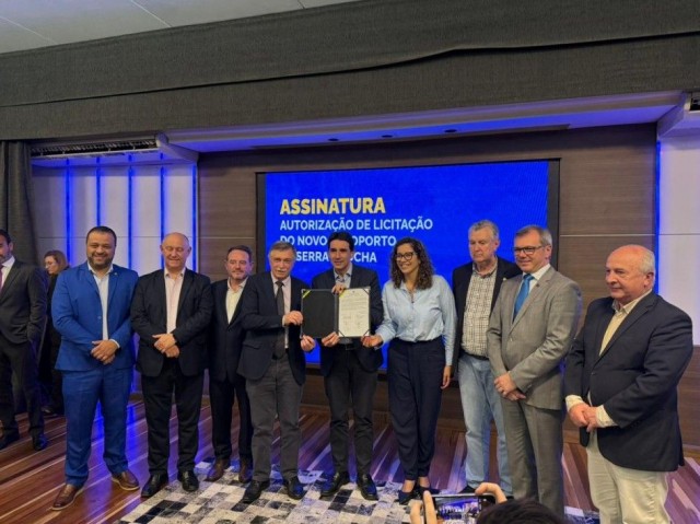 Foi assinada, nesta quinta-feira (16), em Caxias do Sul, a autorização que permite ao município licitar as obras do novo Aeroporto da Serra Gaúcha, localizado em Vila Oliva. O ato, realizado no auditório da Câmara de Indústria, Comércio e Serviços (CIC), contou com a presença do ministro de Portos e Aeroportos, Silvio Costa Filho; do titular da Secretaria de Turismo (Setur), Ronaldo Santini, que representou o governador Eduardo Leite; além de outras autoridades e lideranças regionais.